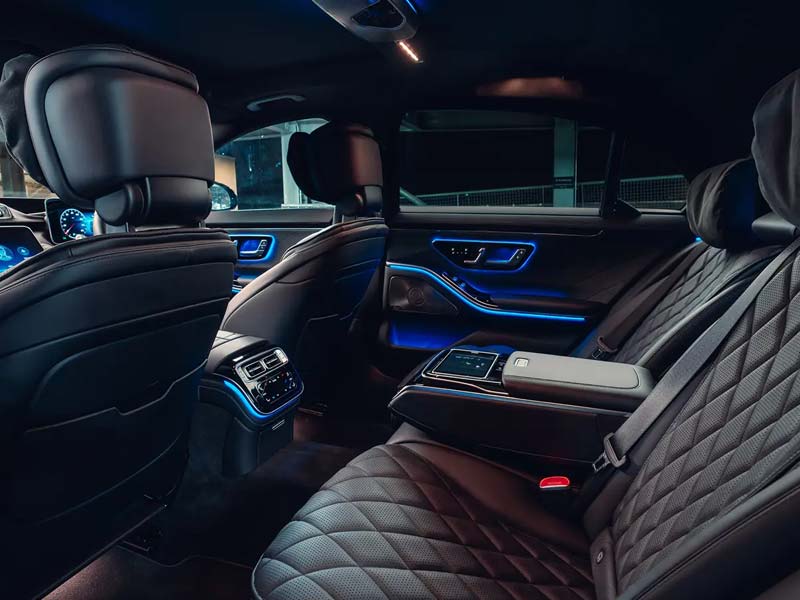The Mercedes Benz S Class is not just about travel; it’s about an enhanced travel experience. From ambient interior lighting that adapts to your mood to a state-of-the-art entertainment system, each detail is designed to make your journey more enjoyable. The privacy features and user-friendly controls ensure that your ride is not just luxurious but also personalized to your comfort preferences.